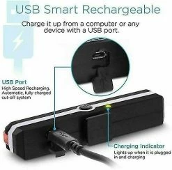 Description:Your reach for the best tail light is overEver run out of batteries unexpectedly? Annoying, isnt it? Now you can say goodbye to weekly battery changes with this Bicycle Tail LightThis bike safety light is super bright, you can be seen easily from blocks awayIt is SUPER BRIGHT, LIGHTWEIGHT, and STYLISH, GUARANTEECan be used as a bicycle helmet light, mountain bike rear light, road bike lights, kid’s bike safety light and MoreSpecification:This new product modeling, using the latest high-power light band of light source, highlight fashion*Trends and technology flavor.26pcs LED, super bright 168 lumen output bicycle rear light led.matched crystal grade transparent acrylic shade, light irradiation distance, 2000 meters at night, during the day and still visible, while Quanta degree viewing angle 250 , fully protect your ride safe, can be used as lighting use.waterproof, key switch and USB charging interface with expanded rubber cover,rain ride secure.*Versatile design to meet the functional requirements of riding.Function 1: Tap to enter the light, tap Shift: Dim – 50% lighting – 100% high lihgting third gear loop, long press 2-3 seconds to exit closed;Function 2: Press 2-3 seconds to enter, tap the shift: to highlight the flash -low light slow flash-slowflash third gear cycle highlighted, press 2-3 seconds to exit closed;Super energy-saving, jump flash of 5h above,dim 20Lumen of 6h, bright 50Lumen of 2.5h,highlighting 100 Lumen of 2h.USB interface to charge (you can use the home charger, computer or mobile power USB interfacecharge), using the world’s most popular lithium-ion polymer battery (3.7V, 500MAH),reciprocally charging and discharging, charging speed, discharge time is long, usually charging 2-3 hours,discharge time is about 2-6 hours.Orange comes with power indicator light, when charging at a glance. When discharging,the orangeindicator light – Indicates fully charged, you can continue to use; orange light and dark respirationblinking – indicates lack of electricity, the need for timely charge;When charging, the orange indicator light flashes and dark respiration is charging; the orange indicator light – charging is completedRubber strap design,suitable for various thickness of the seat tube 1.2-3.2CM,fine front fork all can use.Dimensions: Size 10cm * 1.8cm * 3cmwide twoLight Color: red / whiteMounting options- Horizontal or Vertical mountingPackage Includes(Set):1 x bicycle white and red light set2 x rubber band2 x USB cable2 x user manual