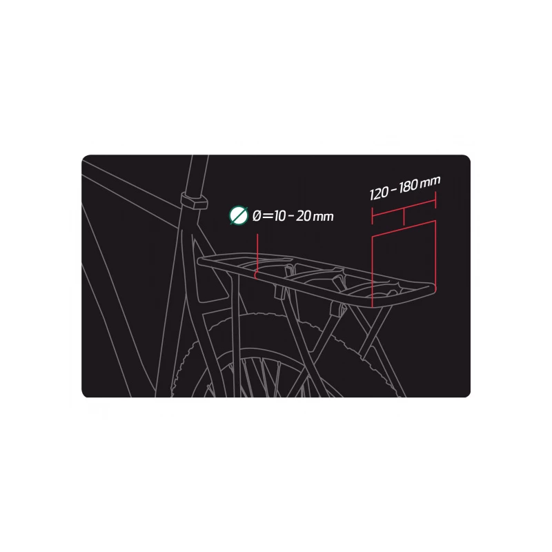- Convient aux porte-bagages : 120-180 mm de largeur / 10-20 mm de diamètre / approuvé pour 25 kg.