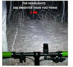 Lumière de vélo de sécurité: 2000 Lumens super lumineux lumière avant de vélo alimenté par 2 LED T6 crée un motif de faisceau plus large et lisse, pourrait améliorer la visibilité maximale sur la route, la rue ou sur la montagne pour votre sécurité à vélo. L’ensemble d’éclairage de vélo est suffisamment polyvalent pour le cyclisme, la randonnée, le camping ou toute activité de plein air et peut être utilisé comme lampe de poche d’urgence. Six modes d’éclairage: Un interrupteur à une touche avec 6 modes d’éclairage différents est pratique pour répondre à tous les besoins, y compris une lumière forte T6 – une lumière faible T6 – une lumière forte T6 – 2 lumière forte T6 – SOS – stroboscope. IPX5 Waterproof: Corps étanche en alliage d’aluminium entièrement scellé, protège contre les éclaboussures d’eau sous tous les angles et dispose d’une excellente capacité anti-collision, un excellent cadeau pour les amateurs de plein air. USB rechargeable: Phare de vélo intégré 1200mAh batterie au lithium rechargeable, entièrement rechargé dans les 3 heures, usb rechargeable, vous pouvez charger le phare de vélo avec banque d’alimentation, chargeur de voiture, pratique à charger. Application multifonctionnelle: Lumière de vélo parfaite pour le cyclisme, la pêche, la course, la randonnée, le camping et d’autres activités dans l’obscurité. Peu importe de jour ou de nuit, sur les routes bondées de la ville ou les routes de campagne spacieuses, notre feu avant et arrière de vélo sera toujours avec vous sur votre vélo pour assurer votre sécurité et celle de votre famille.