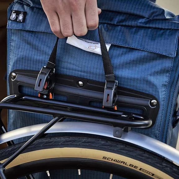 – QMR 2.0 : Le QMR est un système de fixation de haute qualité et de grande technicité, qui se monte et se démonte rapidement. Les crochets peuvent être adaptés aux différents diamètres de tube (8 – 16 mm) du porte-bagages à l’aide des adaptateurs fournis.