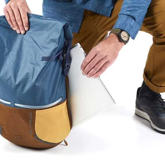 – Eco Finish : Ce produit intègre l’Eco Finish hydrofuge. Appliqué à la surface de votre produit Vaude, il permet à l’eau de pluie de s’accumuler simplement à la surface – sans utiliser de fluorocarbures (PFC) nocifs pour l’environnement. L’Eco Finish vous protège de la pluie et contribue à préserver la nature.