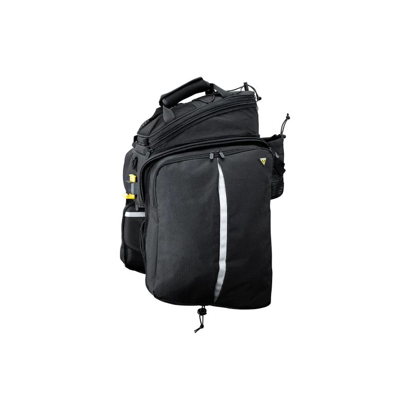 Conçue pour être montée sur un porte-bagages de la gamme MTX Quicktrack, la sacoche TOPEAK MTX DX est un modèle polyvalent offrant une bonne capacité de chargement tout en demeurant assez compacte. Solide et résistante grâce à une fabrication en polyester 600 deniers hydrofuge et à des poches latérales rigides en mousse EVA, la sacoche MTX DX de TOPEAK propose un compartiment principal ainsi que trois poches extérieures zippées, dont une poche extensible sur le dessus, pour emporter et organiser efficacement tout ce dont vous avez besoin. Ce modèle, qui vient équippé d’un emplacement pour bidon, est conçu spécifiquement pour les vélos à assistance électrique sur lesquels il n’est pas possible d’installer un porte-bidon sur le cadre (emplacement de la batterie).