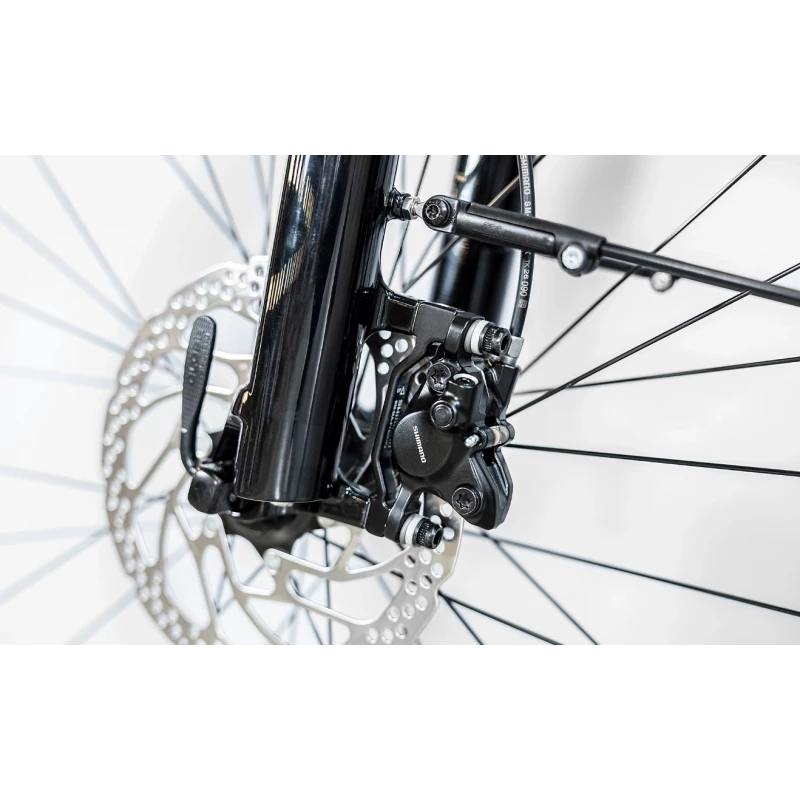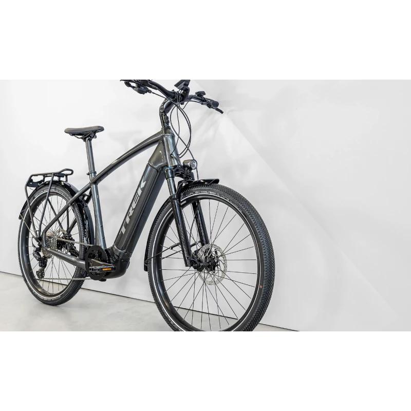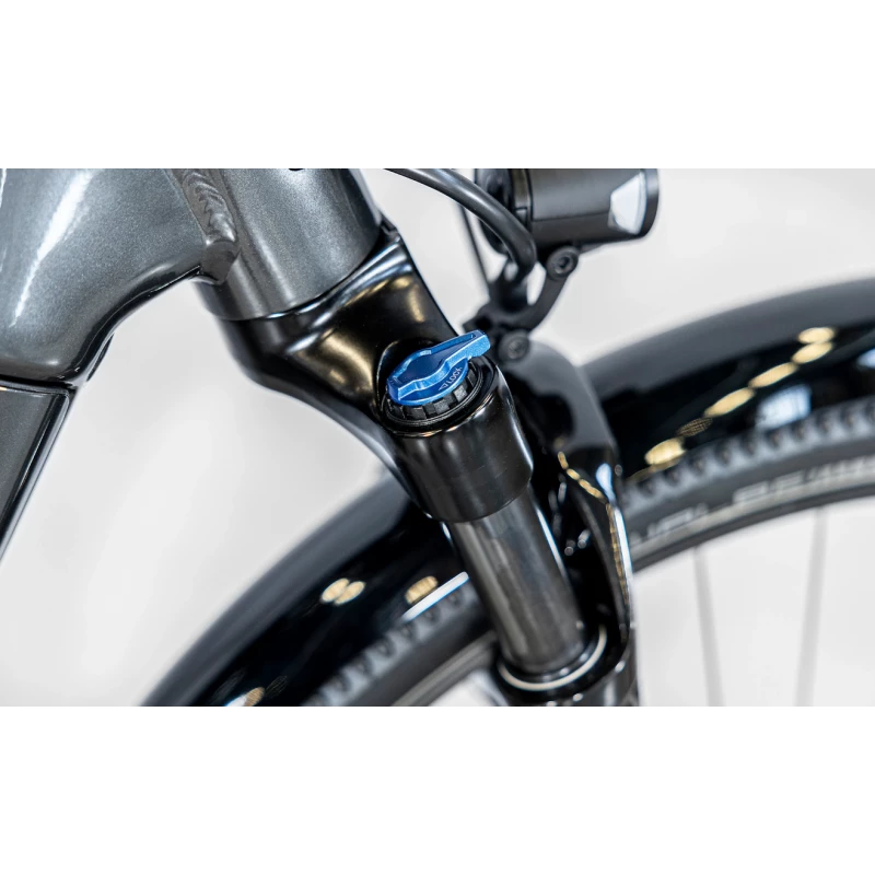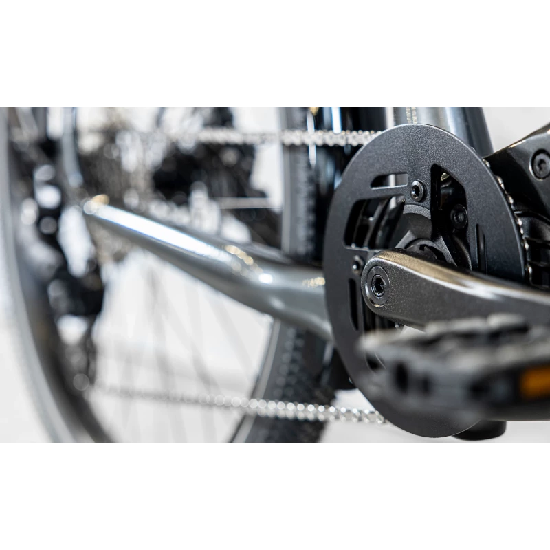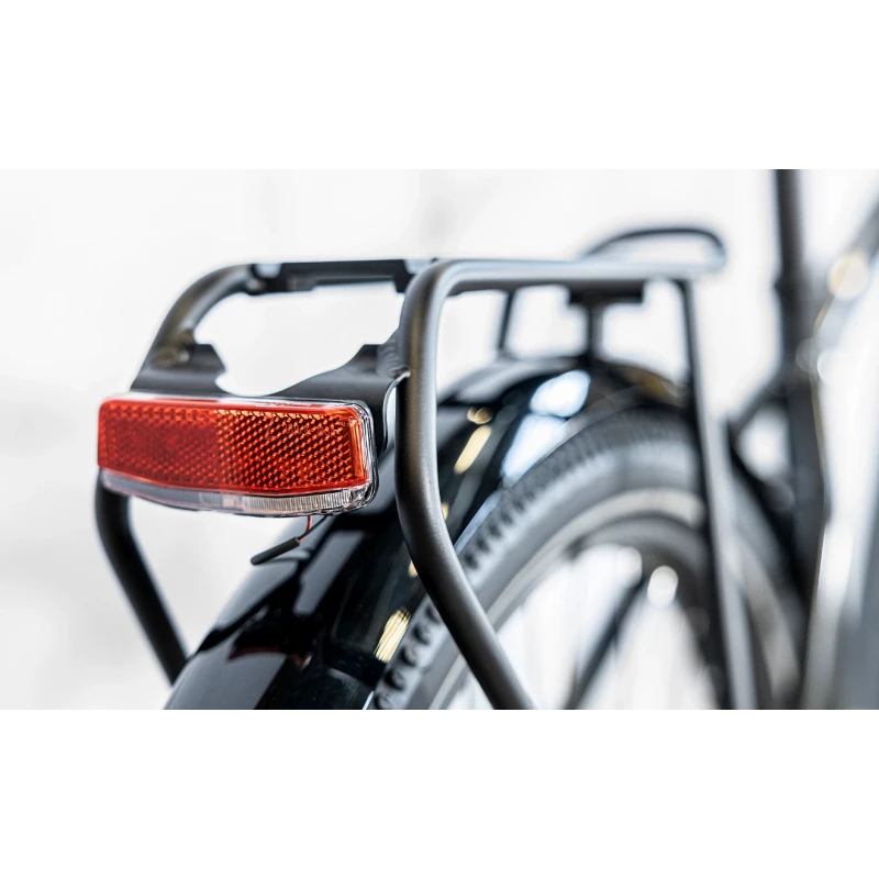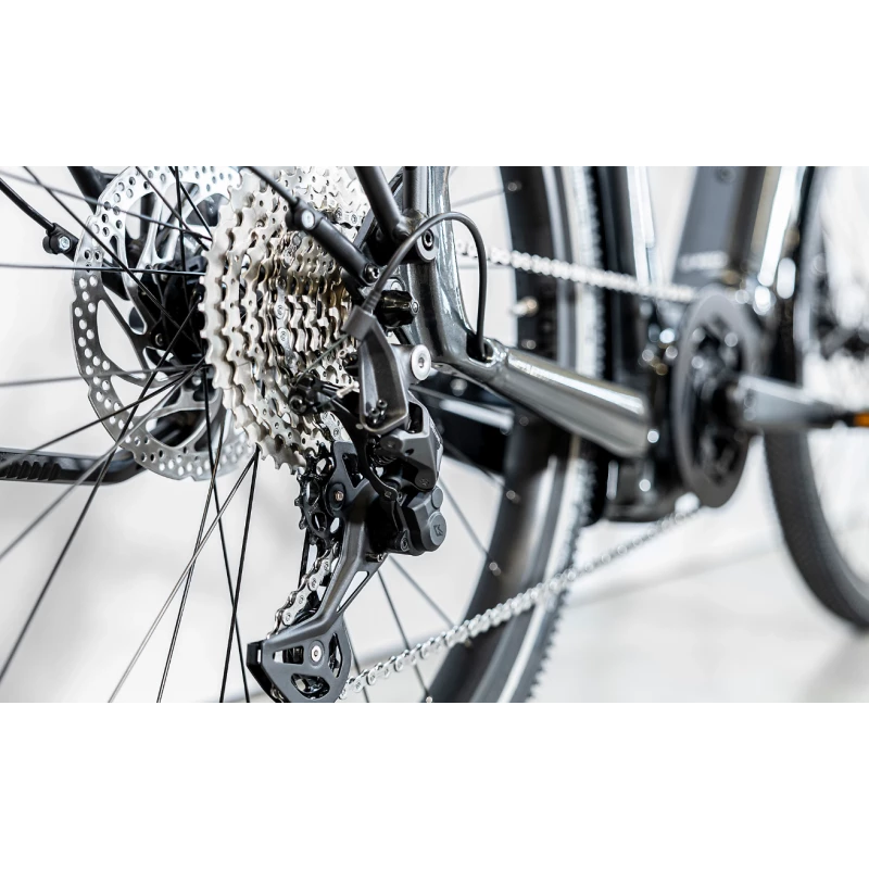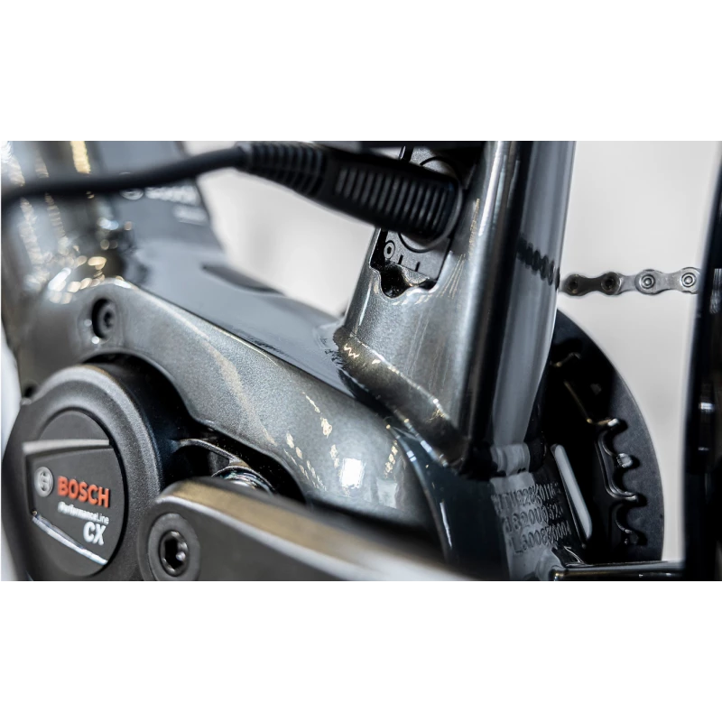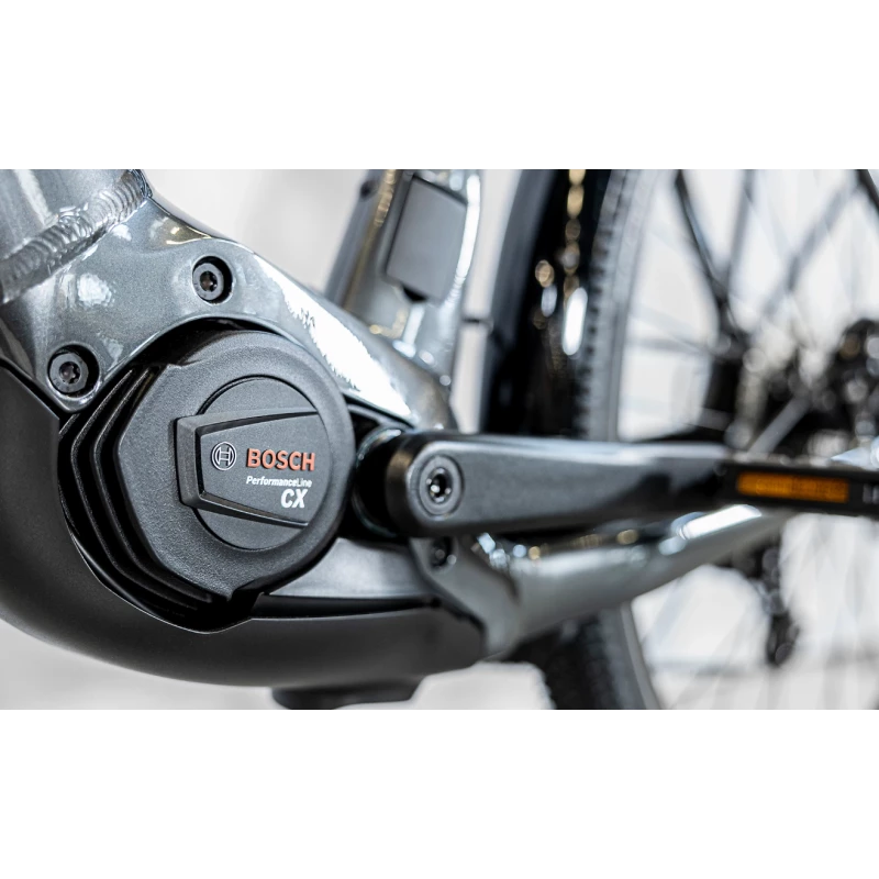 Un cadre en aluminium hydroformé au design élancé qui englobe complètement une batterie Bosch de 625 Wh, un moteur intelligent Bosch Performance Line CX (250 W, 85 Nm) qui offre une assistance jusqu’à 25 km/h et un contrôleur Kiox 300. Ajoutez à cela une fourche télescopique à blocage, une transmission Shimano 9 vitesses, de pour une puissance de freinage garantie par tous les temps, un système de feux avant et arrière intégrés, des garde-boue et un porte-bagages arrière compatible MIK.