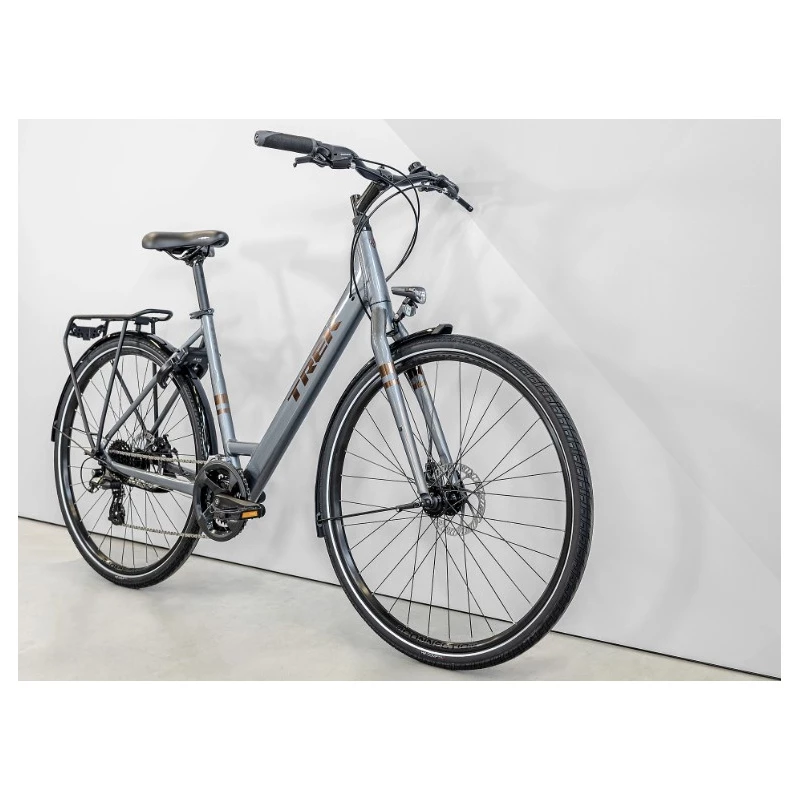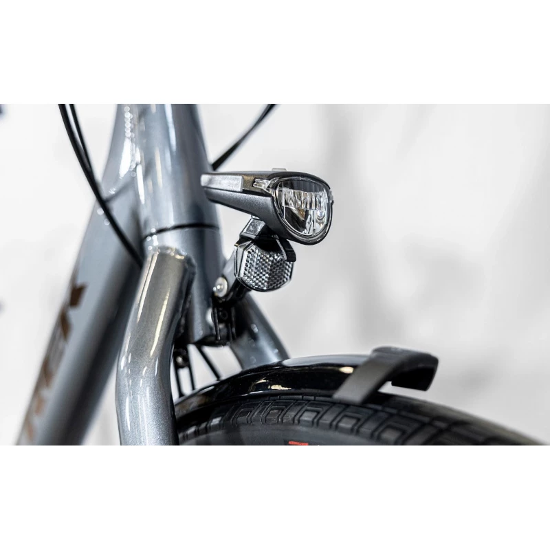 Un cadre en aluminium léger au design ouvert qui permet de monter sur le vélo et d’en descendre aisément, 16 vitesses pour partir à la conquête des terrains les plus divers, des pneus plus larges 40C pour un gain de confiance et de stabilité, des points de contact axés sur le confort comme une poignée en gel et des poignées ergonomiques, de puissants freins à disque et une géométrie qui vous place dans une position confortable plus droite. De plus, il possède tout ce dont vous avez besoin pour rouler tels que les garde-boue, des éclairages, une béquille, un cadenas et un porte-bagage arrière compatible MIK.