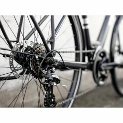 Il possède un cadre en aluminium léger et ouvert qui permet de monter sur le vélo et d’en descendre aisément, des freins à disque qui freineront par tous les temps et de larges pneus pour davantage de stabilité.