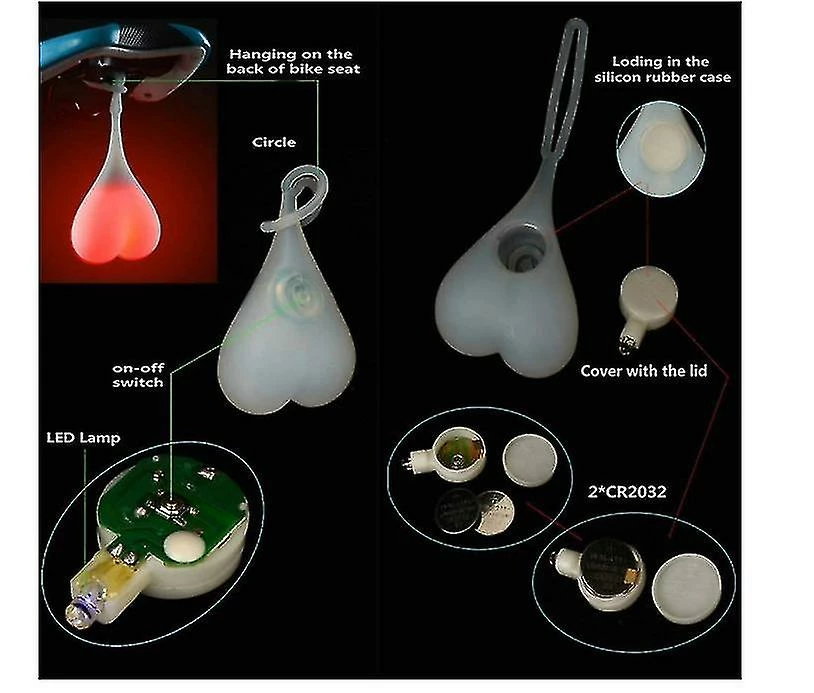 Unbranded Bike Ball Tail Lights- Bike Heart Warning Lights- Night Essential Led Egg Lamp- Imperméable à L’eau (blanc)