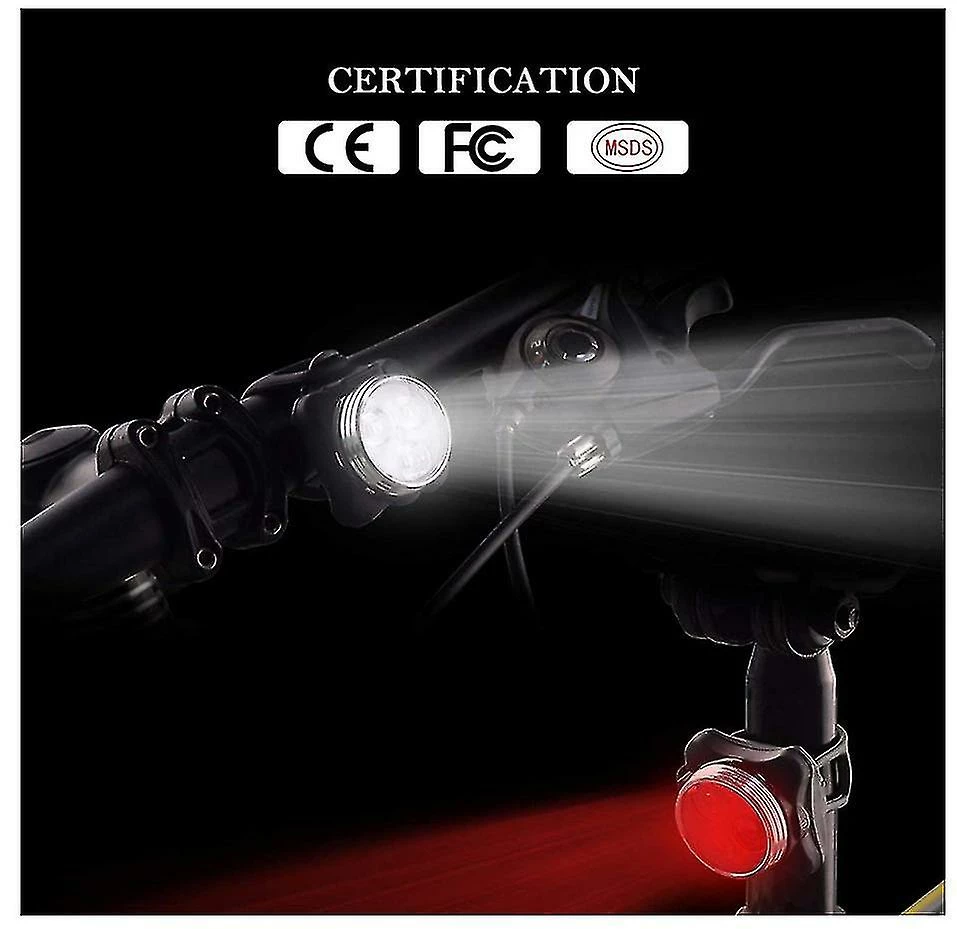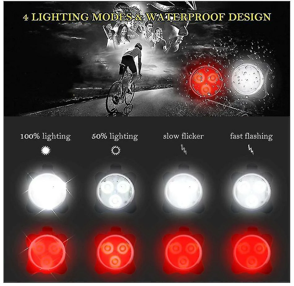 Unbranded Mountain Bicycle Front Light Silicone Led Head Rear Wheel Cycling Accessories Bike Lamp Usb Rouge Et Blanc Rechargeable Pour La Randonnée Camping (noir)