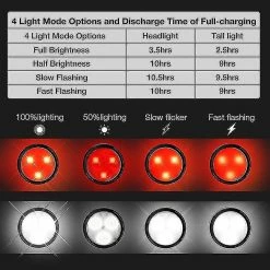 feature:Premium Design: USB Charging Light. Waterproof rating is IPX4 – protected against splashing water from any angle. Four Light Mode Options: One-touch switches for the headlamps and taillamps provide four different lighting modes depending on your preference. Including full brightness, half brightness, fast flashing and slow flashing. EASY TO INSTALL: The silicone straps are designed with two openings to fit snugly on many sizes of seatposts, handlebars, seatposts, backpacks, helmets and stretchers to keep the lights secure and secure. They can be easily loosened and fastened without any tools.MULTI-FUNCTIONAL: This bike light set is versatile enough for cycling, hiking, camping or any outdoor activity, it can be used as an emergency flashlight. This is great for cycling at night or where visibility and safety are a concern. Specification:Material: aluminum alloy + engineering plastic4 modes: strong, weak, slow flash, strobeLEDs: 3 bright LEDsSnow: 40 SnowDischarge time: 4 hoursLife: 10000 hoursCharging: Micro USB cable provided