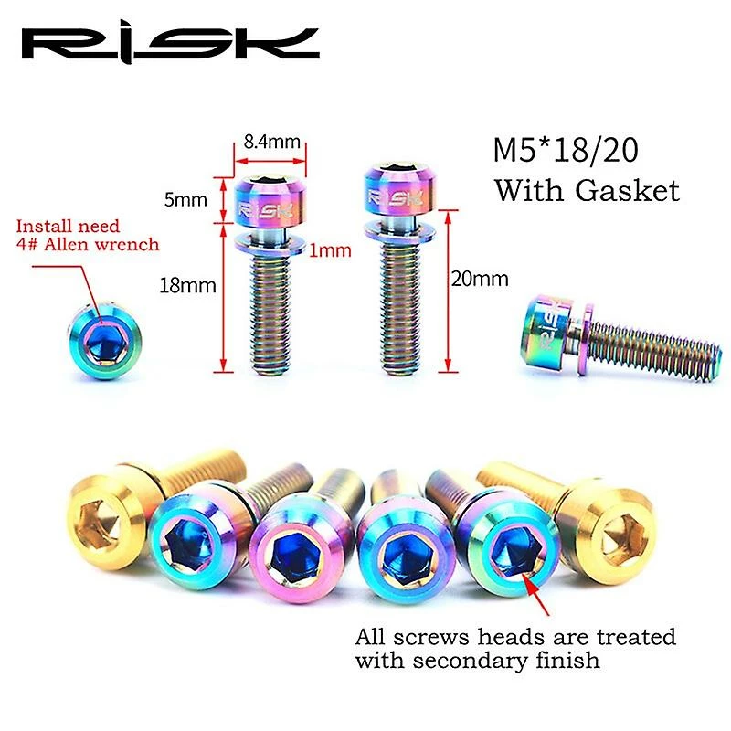 Unbranded Risque 6pcs M5 * 18mm M5 * 20mm Tc4 Titanium Alloy Bicycle Stem Fixation Vis Boulons Pour Bike Mtb Bike Parts 3 Couleurs