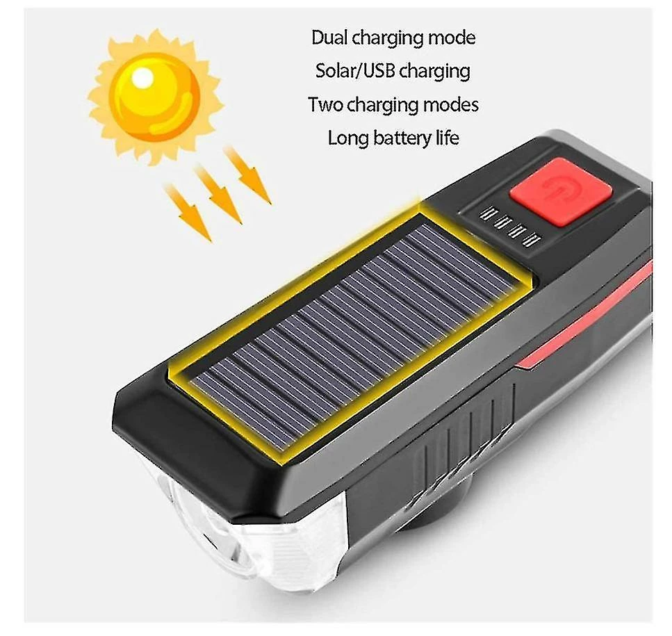 Unbranded Super Bright Bike Light Set Rechargeable Bike Light, énergie Solaire + USB Charging Imperméable à L’eau Pour Road Mountain Facile à Installer