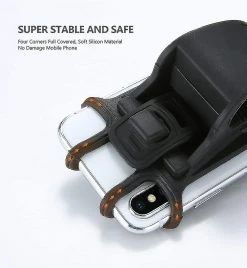UNIVERSAL PHONE HOLDERDurable and elastic silicone bands firmly hold all cell phones and cases from 4 to 6.0 inches,soft silicone will never scratch or damage your phone. VERSATILE MOUNTING SOLUTIONSQuick release mounting strap for various bicycle handlebars, baby strollers, pushchairs, treadmills or shopping trolleys QUICK INSTALLATIONNo tools required, easy to install and remove in seconds SHOCK PROTECTIONSoft touch silicone material absorbs bumps and protects your devices and accessories from damage COMPACT AND LIGHTWEIGHTSmall and light, it is convenient to carry in the pockets or bags on the go SHOCK PROTECTION Soft touch silicone material absorbs bumps and protects your devices and accessories from damage VERSATILE MOUNTING SOLUTIONS Quick release mounting strap for various bicycle handlebars, baby strollers, pushchairs, treadmills or shopping trolleys UNIVERSAL PHONE HOLDER Durable and elastic silicone bands firmly hold all cell phones and cases from 4 to 6.0 inches,soft silicone will never scratch or damage your phone.