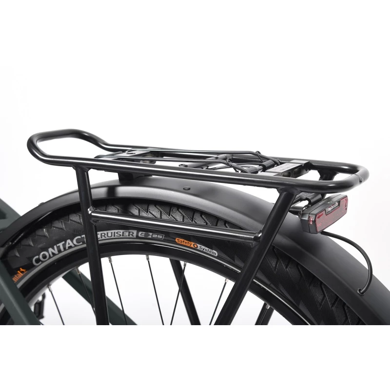De robustes pneus Continental de 27,5” et une fourche aluminium à suspension à l’avant vous permettront d’atteindre votre destination sereinement, même hors des sentiers battus.